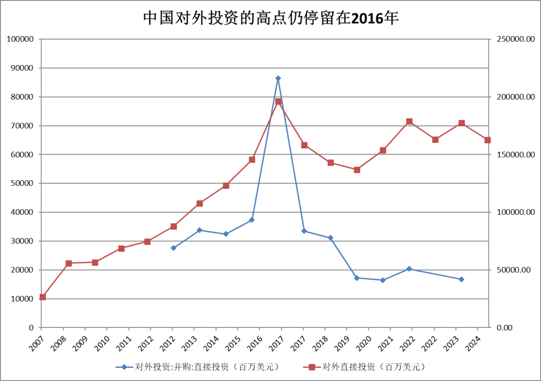 中国上一轮海外投资的高峰是在2015-2016年,多重因素推动了当时中国资本在全球买买买。